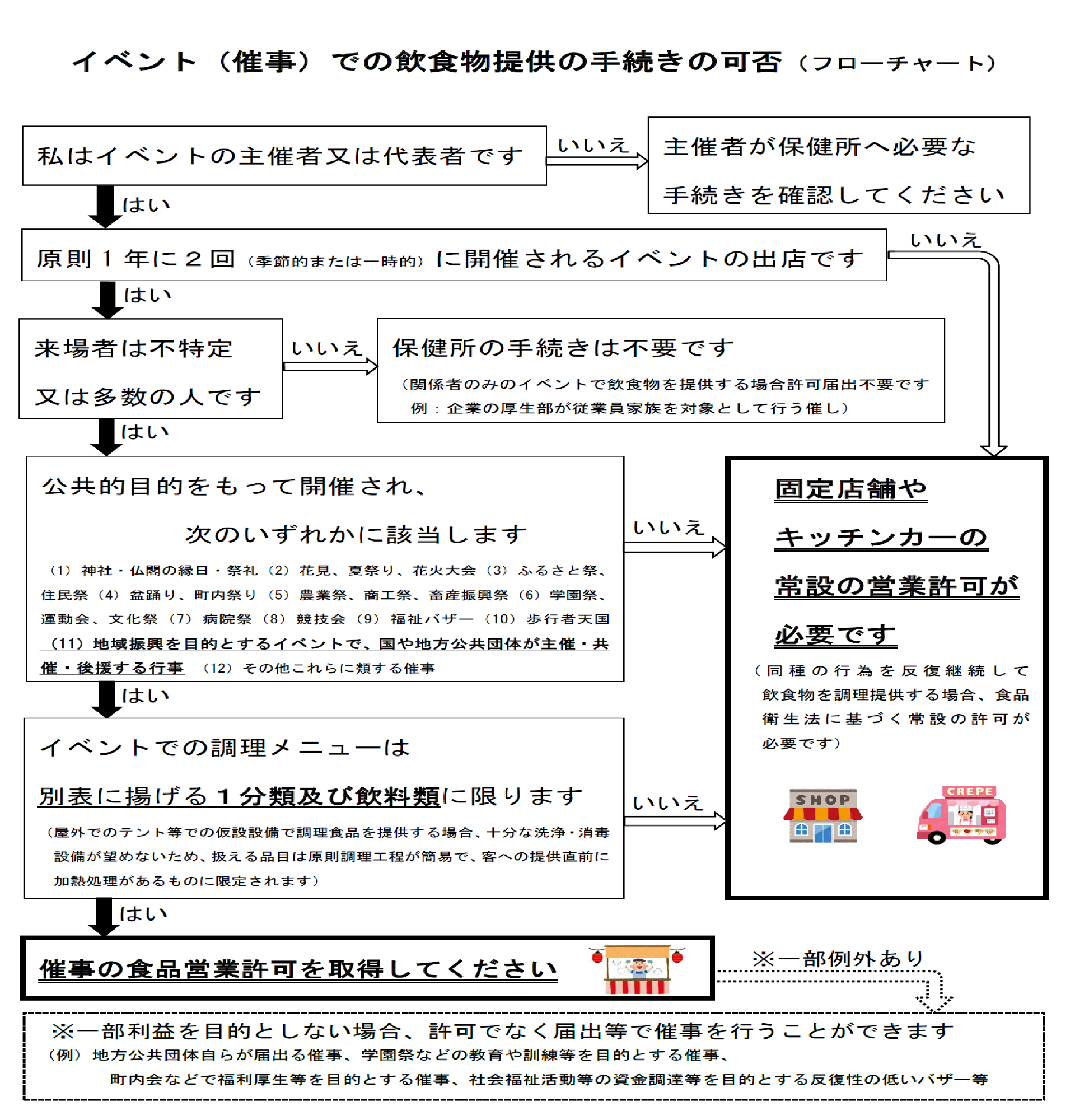 催事に該当する場合は、食品営業許可、届出が必要な場合があります。