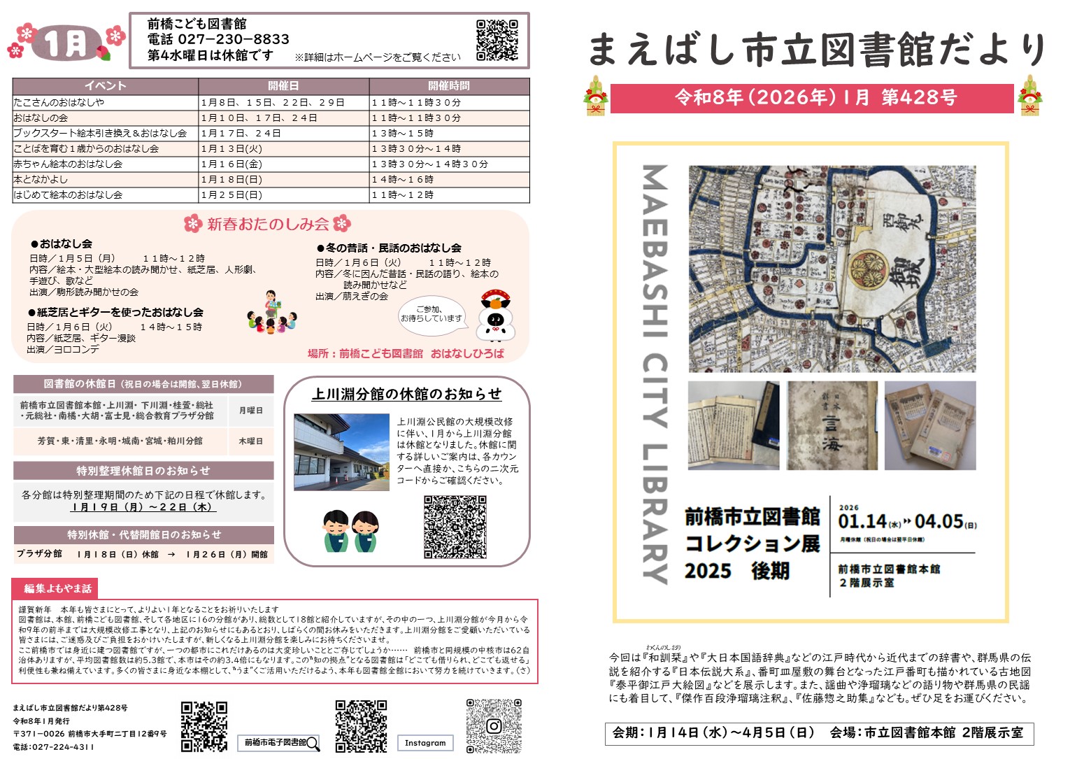 まえばし図書館だより2026年1月号 (PDFファイル: 2.2MB)