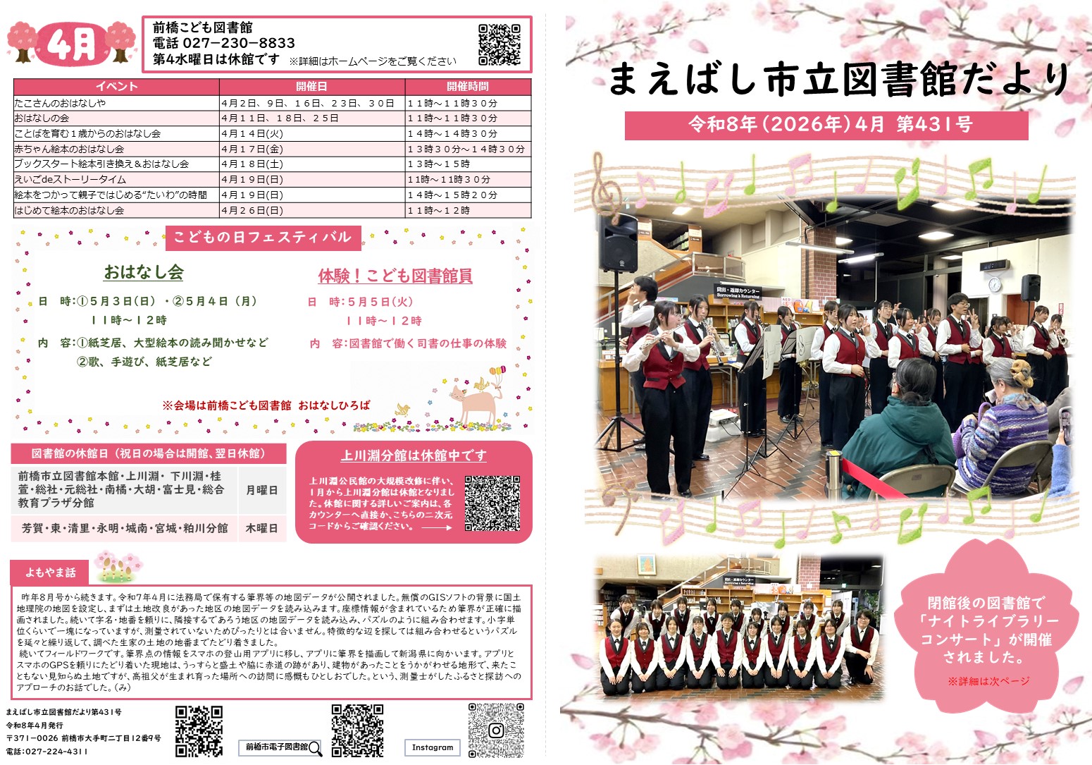 まえばし図書館だより2026年4月号 (PDFファイル: 2.9MB)