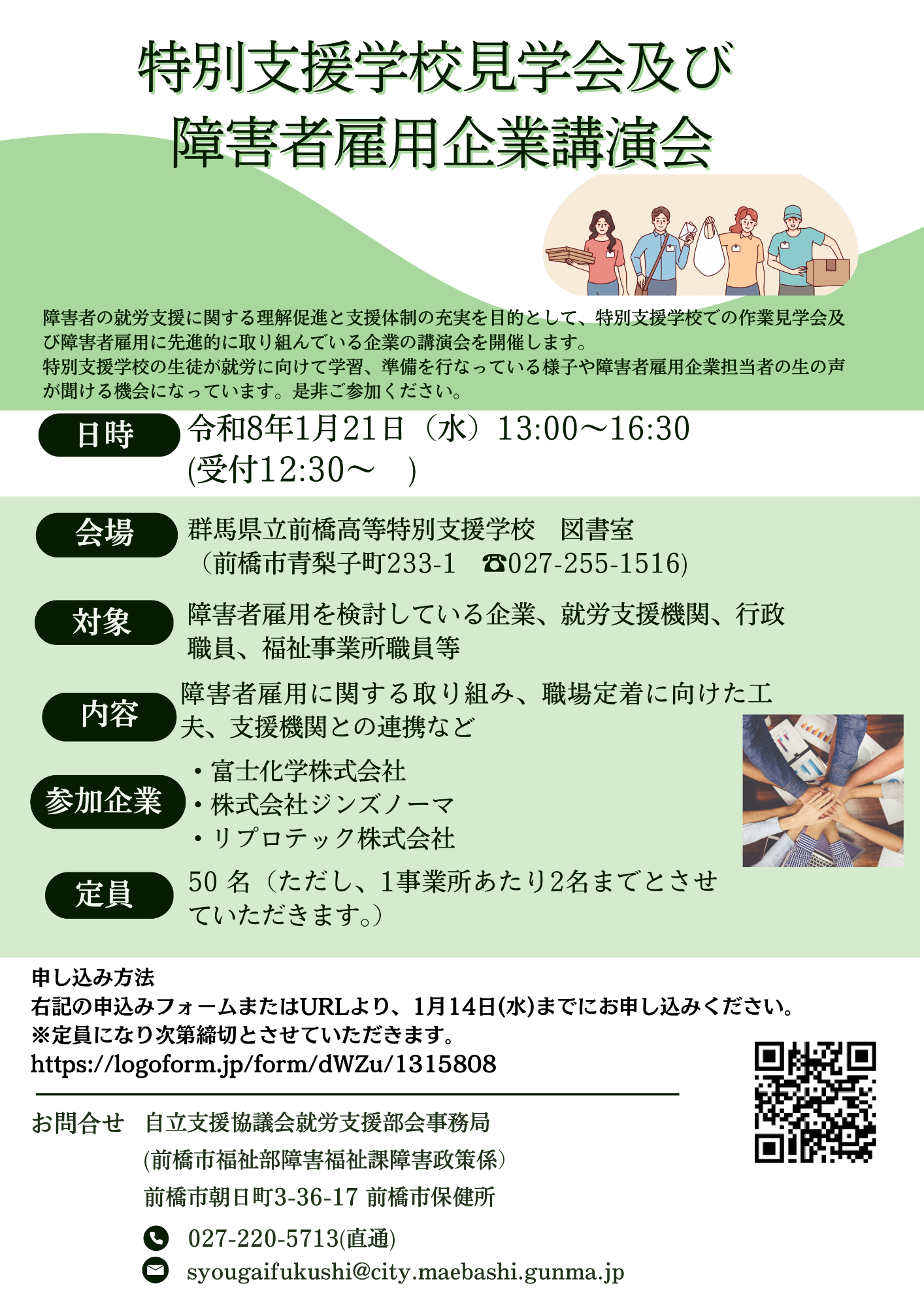 前橋市自立支援協議会就労支援部会では、障害者の就労支援をもっと身近に感じていただけるよう、講演会を開催します。