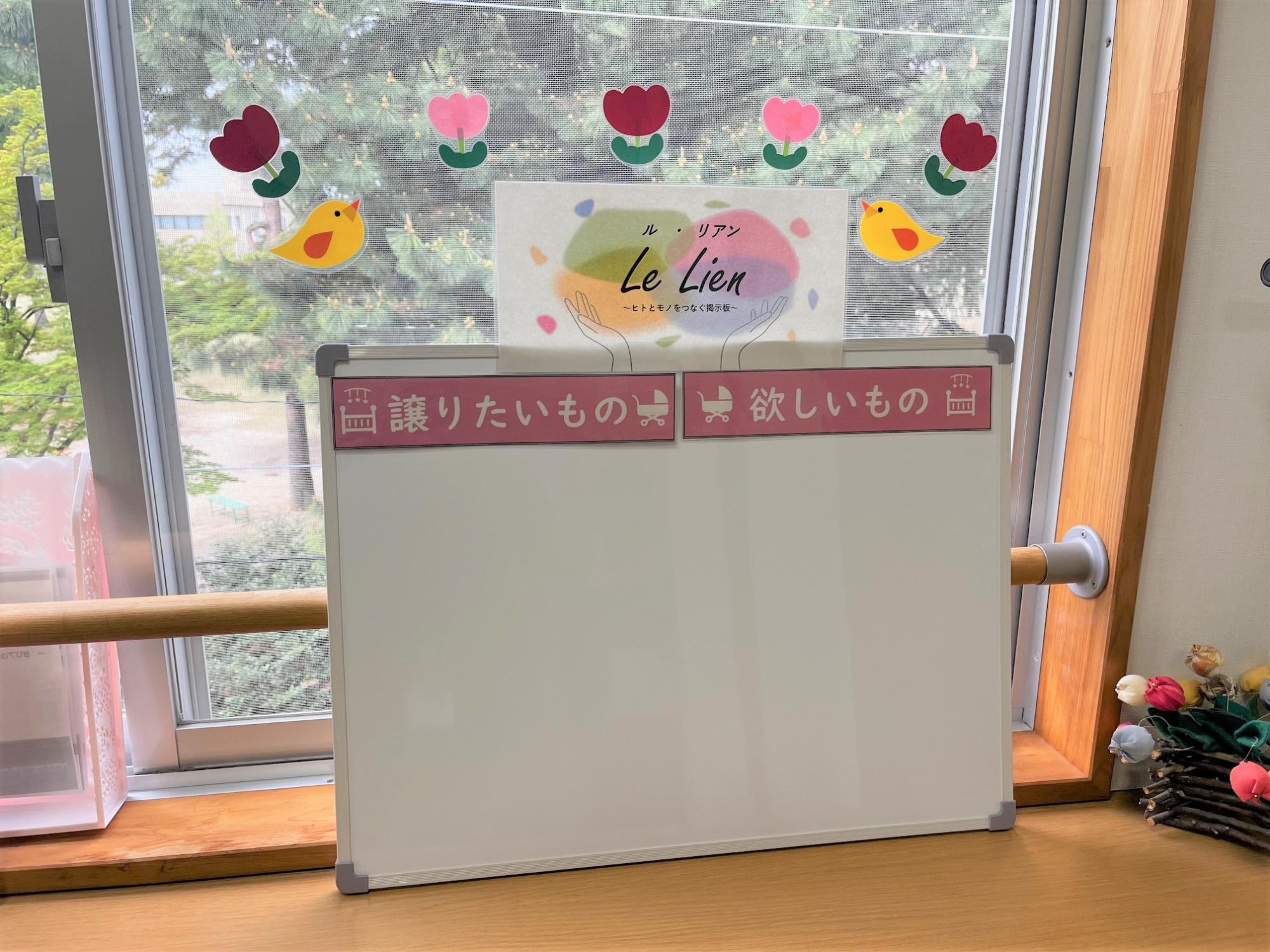 市内にある地域子育て支援センター(下記、実施施設)では、「Le Lien(ル・リアン)~ヒトとモノをつなぐ掲示板~」を活用して、「譲りたい人」と「必要とする人」をマッチングして、各家庭で使わなくなったベビー用品やおもちゃなどをリユース(再利用)する資源循環の取組を行っています。