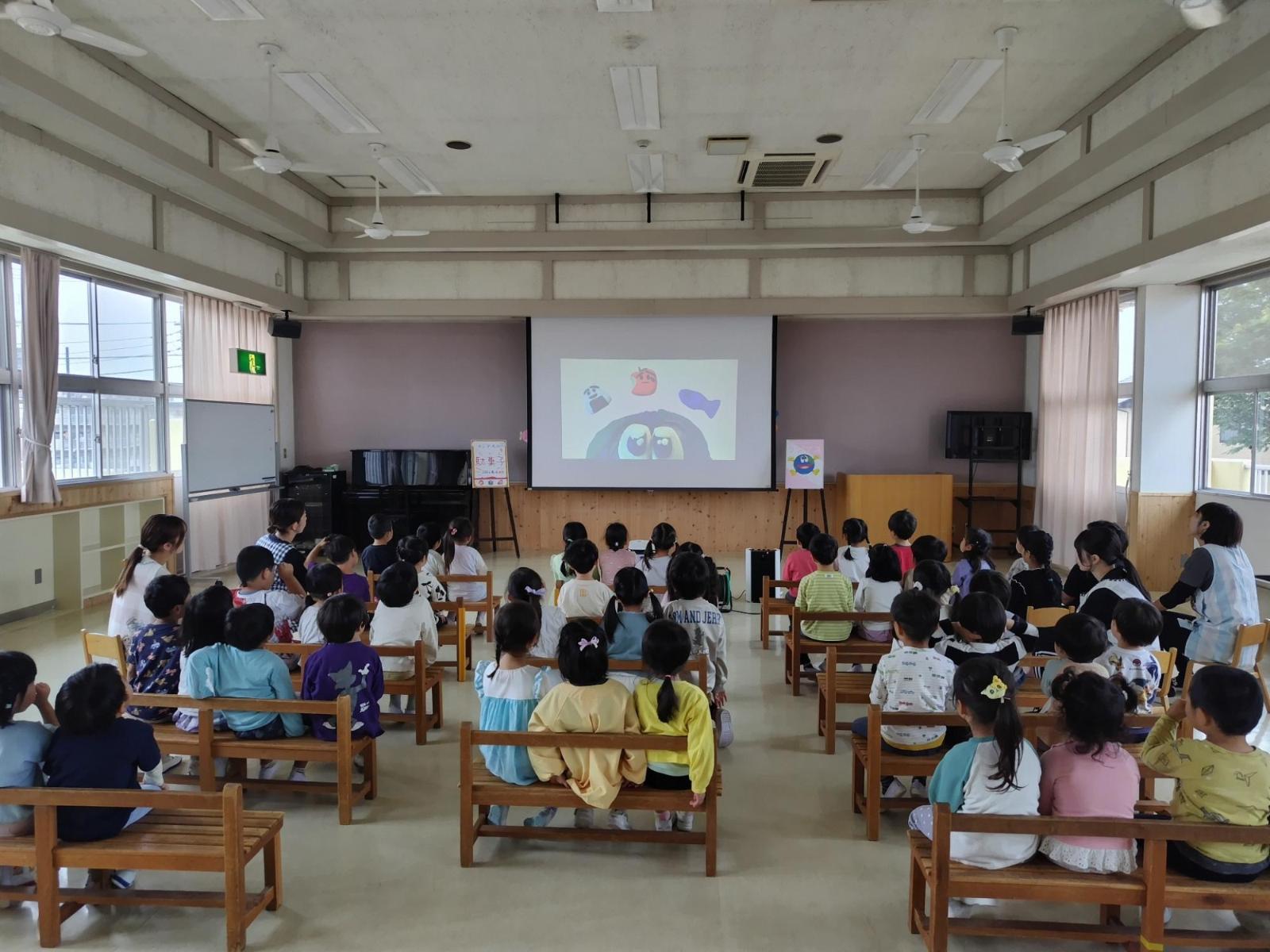配信中)の放映や紙芝居の読み聞かせ、ラジアスのぬり絵を行うなど、園児にもわか