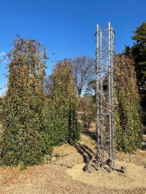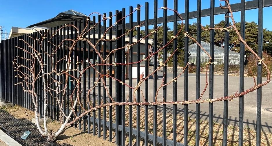 誘引とは、不要な枝を剪定してアーチ、フェンスやポールなどに紐等で結び付けて固定する作業です。