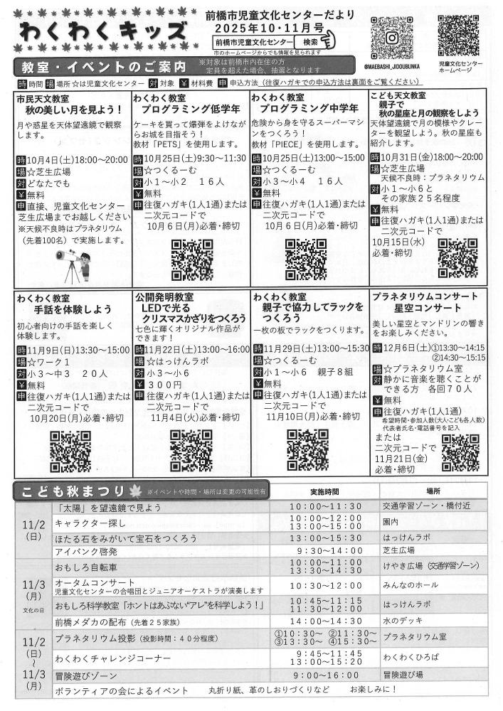 「わくわくキッズ」催事応募の対象は前橋市内在住・在学の方に限られますのでご了承ください。