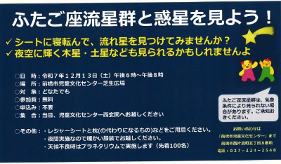 詳細は児童文化センター(027-224-2548)までお問い合わせください。