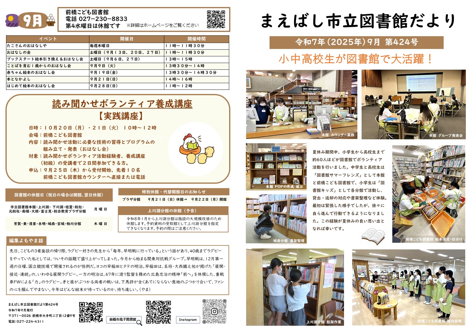 まえばし図書館だより2025年9月号 (PDFファイル: 2.3MB)