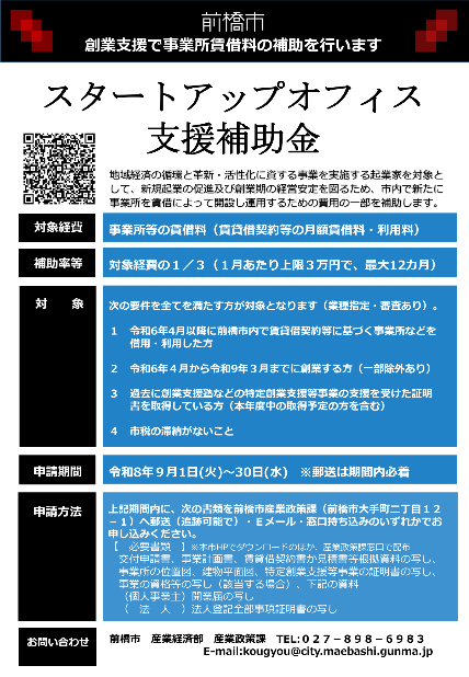 上記期間内に、下記申請書類を揃えて申請窓口へ直接持ち込むか郵送(期間内必着)、メール(kougyou@city.maebashi.gunma.jp)にて。